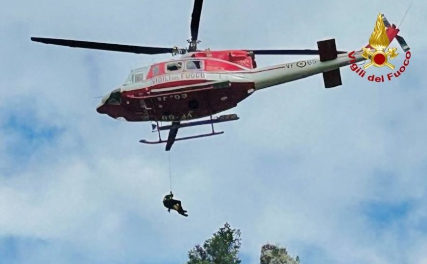 Balvano, cane caduto in dirupo recuperato con elicottero dai Vigili del fuoco