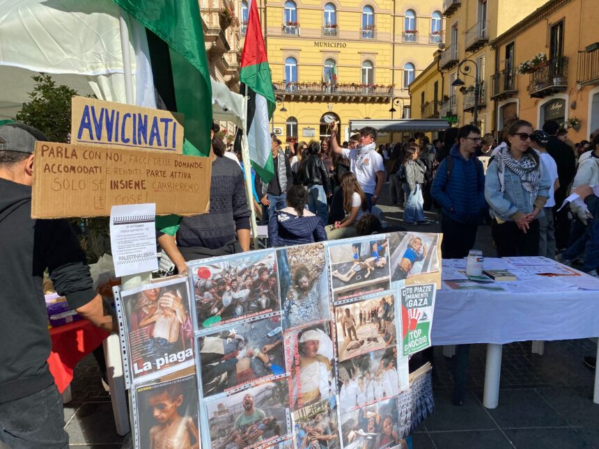 Un coro univoco e trasversale si è alzato da piazza Matteotti a Potenza, luogo che ospita la sede del Palazzo di città del capoluogo di regione lucano. Lì da giorni è in atto un presidio permanente di attivisti che manifestano contro la strage che da circa due anni si sta svolgendo a Gaza e nello stesso posto alcuni studenti lucani si sono dati appuntamento per far sentire il loro dissenso verso una guerra che spezza vite ma che allo stesso tempo sta superando i confini e unendo i popoli nella solidarietà globale verso le migliaia di vittime innocenti palestinesi.
