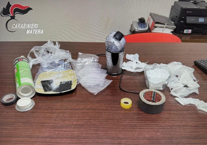 Nell’ambito di tali servizi, a Scanzano Jonico, i Carabinieri del Nucleo Operativo e Radiomobile della Compagnia di Policoro, durante un posto di controllo in via Nazionale, notavano un 38enne del posto che, alla guida della propria autovettura, alla vista della pattuglia effettuava una brusca manovra di svolta a sinistra desistendo immediatamente dopo, per il sopraggiungere di un’altra pattuglia di Carabinieri. A seguito di tale condotta, con tutta evidenza finalizzata ad eludere il controllo, i carabinieri lo bloccavano prontamente e, in ragione dello stato di ingiustificata agitazione dell’uomo, in regola con i documenti di guida e circolazione, lo sottoponevano ad un approfondito controllo. L’uomo consegnava dapprima un taglierino a serramanico, prelevandolo dalla tasca anteriore destra del pantalone e, successivamente dagli slip, due involucri costituiti da due buste in cellophane sigillate, contenenti 215 grammi di cocaina. La perquisizione veicolare ha permesso inoltre di rinvenire, nel vano porta oggetti dello sportello, un ulteriore taglierino a serramanico e un coltello a serramanico; nel cofano posteriore veniva rinvenuto un tirapugni in metallo con corda di fissaggio e moschettone di chiusura. Veniva estesa la perquisizione presso la dimora dell’uomo ove venivano ulteriori residui di cocaina, materiale per la pesatura ed il confezionamento.