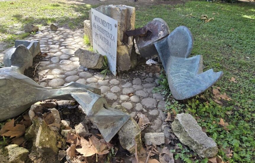 Sabato 11 ottobre 2025 – Nelle scorse ore è stato rilevato un cedimento strutturale dell’opera realizzata dallo scultore Vittorio Basaglia, collocata sul giardino di via Aldo Moro alle spalle del Palazzo Comunale, dedicata alla insurrezione di Matera del 21 settembre 1943.