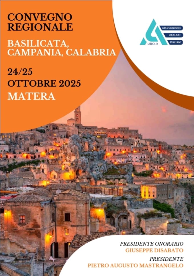 Venerdì 24 ottobre 2025 – Oggi, venerdì 24 ottobre, e sabato 25 ottobre, nell’Hotel San Domenico al Piano di Matera, si terrà il Convegno Regionale “Basilicata 2025”, promosso da AURO.it – Associazione Urologi Italiani, con la partecipazione delle sezioni regionali di Basilicata, Campania e Calabria.