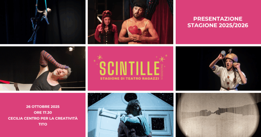 Domenica 26 ottobre 2025 – Domenica 26 ottobre 2025, dalle ore 17.30, presso il Cecilia – Centro per la Creatività di Tito (PZ), si svolgerà l’evento di presentazione della quarta edizione di “Scintille”, la stagione di teatro ragazzi curata dalla Compagnia Teatrale Petra con il sostegno del Comune di Satriano di Lucania e del Comune di Tito. Durante l’incontro sarà lanciata la campagna abbonamenti per la nuova stagione, con la possibilità di sottoscrivere l’abbonamento direttamente in loco.