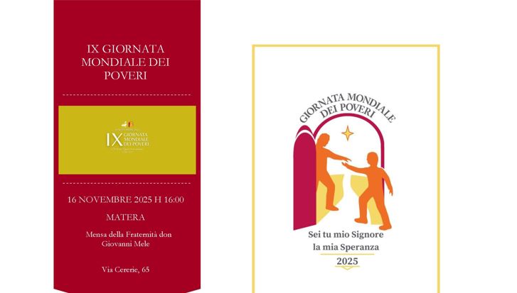 Domenica 16 novembre 2025 – Oggi, 16 novembre alle ore 16:00 nella sede della Mensa della Fraternità don Giovanni Mele, in Via Cererie, 65 a Matera, in occasione della IX Giornata Mondiale dei Poveri istituita da Papa Francesco, la Caritas diocesana di Matera-Irsina presenterà l’evento “La bellezza è il superfluo necessario”.