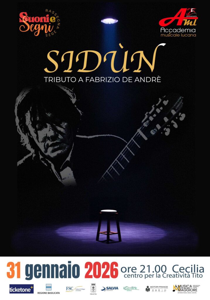 Segue il 31 gennaio (ore 21) il tributo intenso e fedele a Fabrizio De André con Sidùn, ensemble lucano che rilegge il cantautore genovese con passione e rispetto, tra nostalgia e poesia.