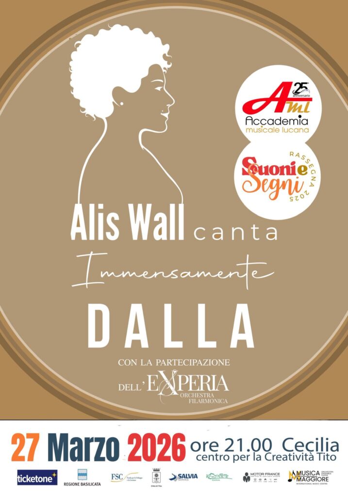 Il 27 marzo (ore 21), la voce femminile di Alis Wall incontra l’eredità di Lucio Dalla in Immensamente Dalla, concerto-tributo diretto dal Maestro Francesco Fabrizio con la partecipazione dell’Experia Orchestra Filarmonica. Omaggio sensibile e contemporaneo, che affronta anche il tema dell’endometriosi, in linea con l’impegno civile dell’artista bolognese.