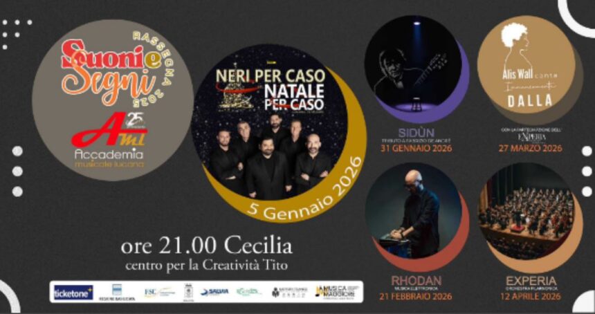 Dal 5 gennaio al 12 aprile 2026, il Centro per la Creatività Cecilia di Tito (PZ) si trasforma in palcoscenico d’eccellenza per un viaggio musicale che parla al cuore e alla memoria, tra voci iconiche, omaggi poetici e suggestioni elettroniche.