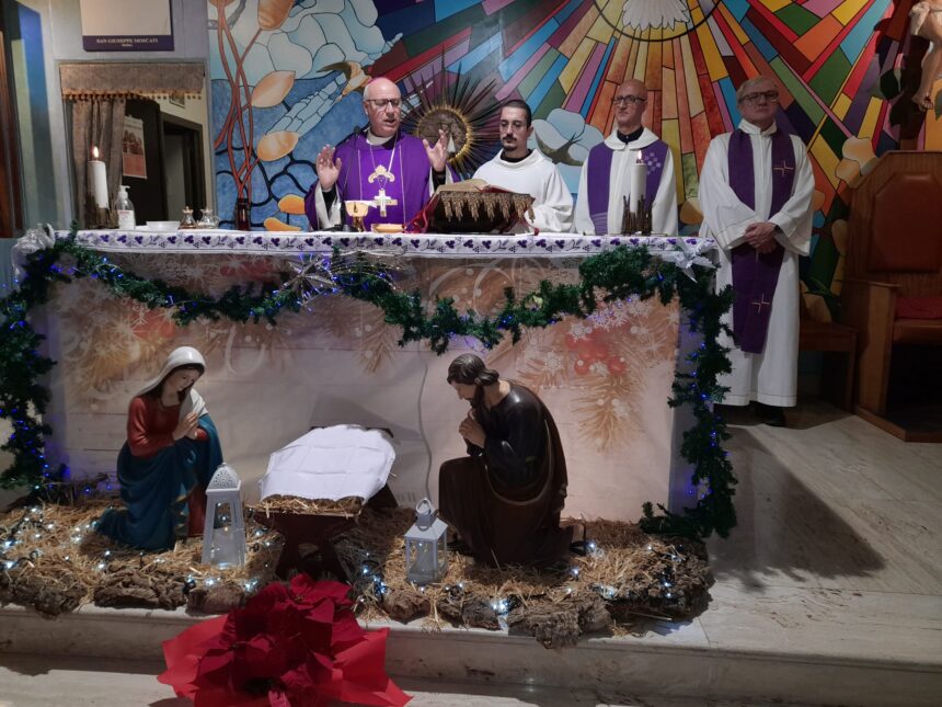 “Eccellenza Reverendissima Padre Davide, all’inizio della celebrazione eucaristica nel clima liturgico dell’Avvento, prossimi a vivere il Natale, la cappellania ospedaliera San Giovanni Paolo II rappresentata da me e don Mimmo e i nostri collaboratori , Le rivolgiamo il saluto e il benvenuto nel nome del Signore.