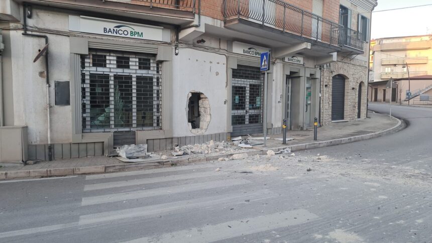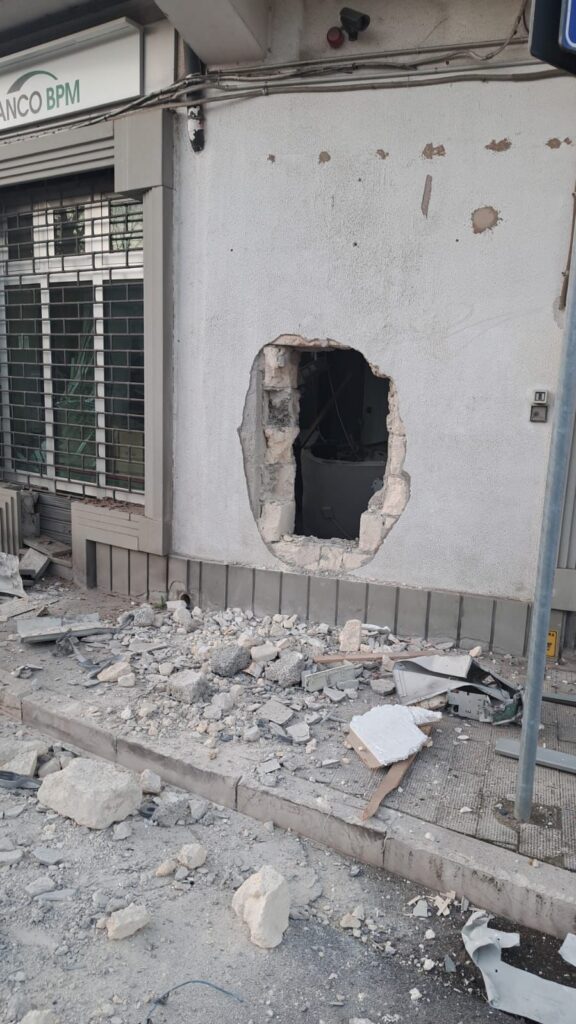 RAPOLLA – Ancora un bancomat preso d’assalto in Basilicata, il settimo in pochi mesi. È successo all’alba di oggi a Rapolla, in provincia di Potenza. Colpita la filiale di BPM, Banca Popolare di Novara a pochi metri dalla centrale piazza Garibaldi. Gli assalitori, probabilmente in tre, incappucciati, hanno provocato una doppia esplosione. I Carabinieri li hanno inseguiti per otto chilometri sulla statale 93 Potenza-Barletta in direzione Canosa con la radiomobile di Melfi che li ha ingaggiati fino a quando i ladri non hanno usato i chiodi. Danno e bottino ancora da quantificare. Sul posto sono intervenuti gli artificieri di Potenza e i Carabinieri della compagnia di Melfi. Intervenuti anche i Vigili del fuoco per controllare che non ci fossero danni alle condotte del gas.