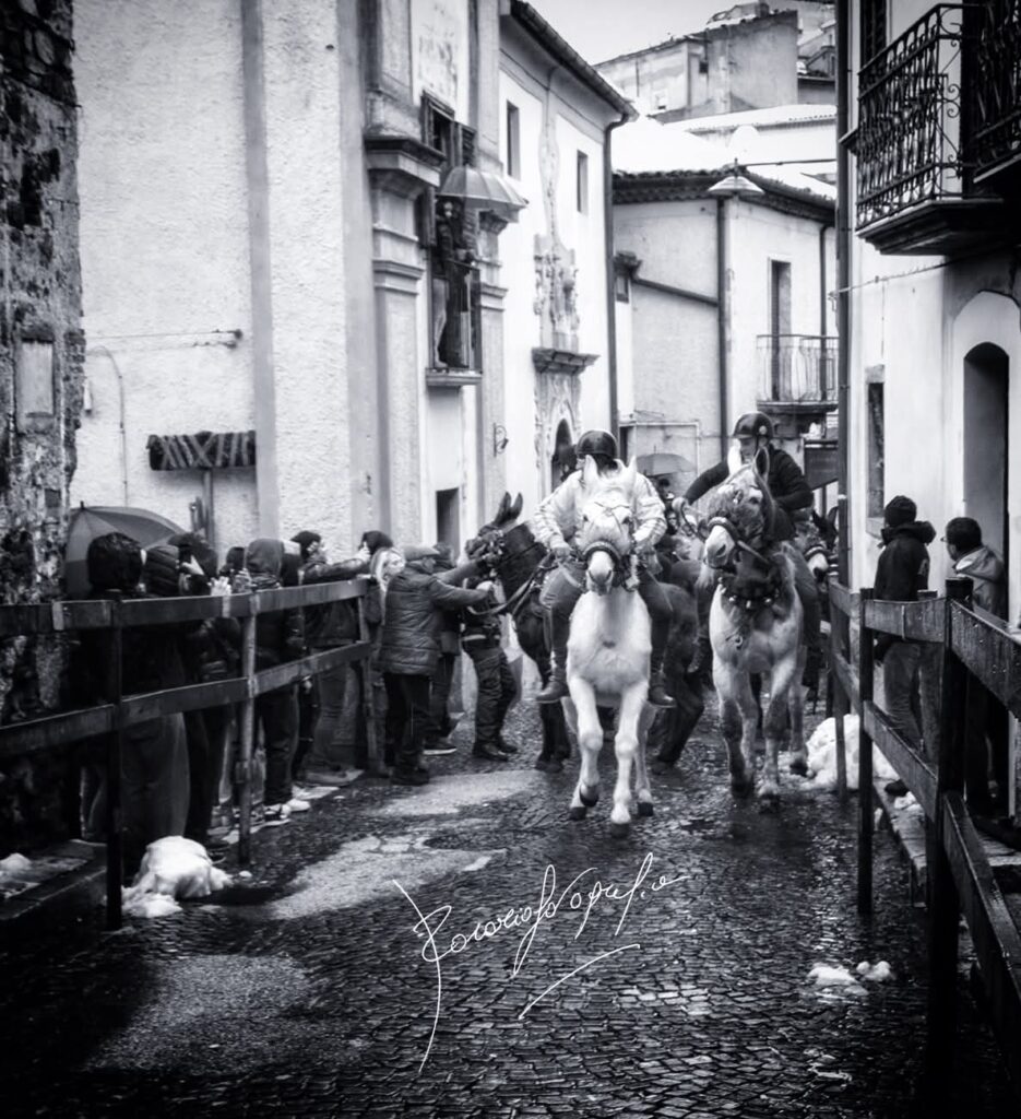 Alle 12.30 ci sarà la TRADIZIONALE CORSA DEI MULI DI SANT’ANTONIO ABATE. Alle 13.00 “Zë Gërard Fott” darà il via al CARNEVALE STORICO PIGNOLESE mangiando i bucatin ind u “Pisciatur” a conclusione della mattinata, ci sarà la premiazione dei vincitori e del mulo più bello.
