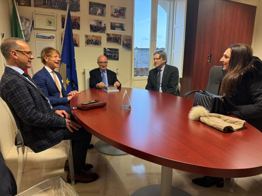 Accolto da una delegazione composta dal Direttore del Conservatorio, M° Carmine Antonio Catenazzo, dalla Vicedirettrice, M° Grazia Giusto, dal Direttore Amministrativo, dott. Costantino De Finis, e dal referente dei Dottorati e della Terza Missione, M° Giuseppe Salatino, il Presidente Iai ha visitato gli spazi dell’Istituto, rimanendo particolarmente colpito dalla bellezza storica e architettonica dei luoghi, nonché dal clima di vitalità culturale che caratterizza il Conservatorio materano.