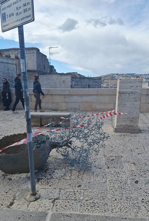 MATERA – Questa mattina una delle opere monumentali dell’artista Andrea Roggi installata in piazza Duomo, nel centro storico di Matera, è stata ritrovata danneggiata e spostata di due metri. Inizialmente si è pensato ad un incidente provocato dalle avverse condizioni meteo e dal forte vento. Non si esclude, però, anche la possibilità di un tentativo di furto da parte di ignoti. Sulla vicenda sta indagando la Questura.