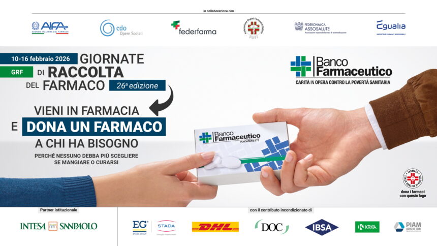 Martedì 10 febbraio 2026 – Da oggi, martedì 10, a lunedì 16 febbraio, si svolge la 26ª edizione delle Giornate di Raccolta del Farmaco: si chiede ai cittadini di donare uno o più medicinali da banco per chi ha bisogno.