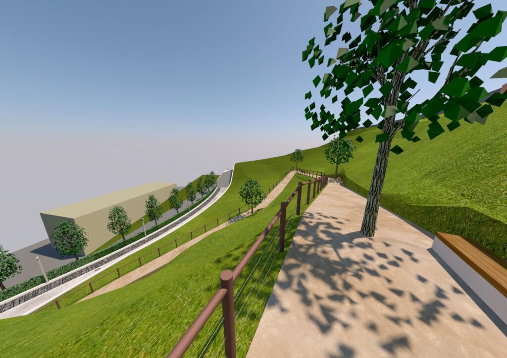È prevista la realizzazione di una nuova area verde attrezzata, comprensiva di nuovi arredi, lluminazione, essenze autoctone, attrezzature per bambini. Un percorso che poi andrà a collegarsi con la parte alta, dove c’è la Passeggiata del Tracciolino.