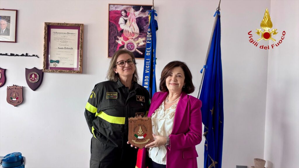 A suggello della giornata, il Comandante Amalia Tedeschi ha omaggiato il Prefetto con il Crest del Comando di Matera, quale segno di riconoscimento e gratitudine per la vicinanza dimostrata alle donne e agli uomini dei Vigili del Fuoco.