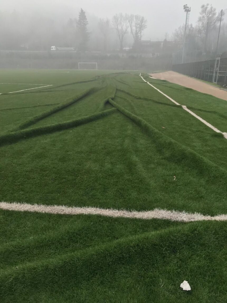 POTENZA – Il ministro Carlo Nordio, a Potenza questa mattina per un incontro sul referendum sulla Giustizia, è arrivato nella giornata di ieri, martedì 3 marzo, nel capoluogo lucano, atterrando con un elicottero sul campo Federale della FIGC. L’atterraggio ha evidentemente causato dissesti nel mando erboso sintetico (come si evince dalla foto di copertina) comportando la chiusura dell’impianto fino a data da destinarsi. La struttura, gestita e di proprietà del Comitato lucano della FIGC – è usata quotidianamente da diverse società sportive che adesso dovranno inevitabilmente trovare un altro luogo per allenamenti e gare ufficiali.