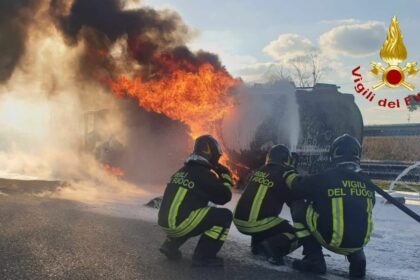 Autocisterna che trasportava carburante in fiamme sulla S.S. 106 Jonica